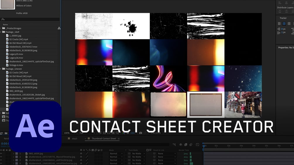 This simple and lightweight After Effects script generates a contact sheet from the footage and images in your project. There have been countless times when I’ve needed to create a contact sheet of various versions or quickly view all my project assets in a single composition—this script makes that process fast and easy.
